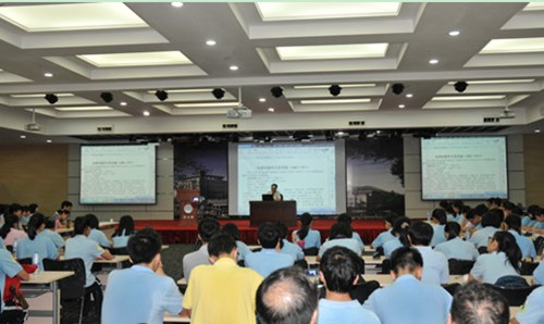 随后,由我校著名教授李工真讲解武汉大学的校史。他用风趣幽默的语言、详实的历史资料,从多重角度还原了一个底蕴深厚的武汉大学,阐释了我校自强、弘毅、求是、拓新的武大精神,以及其百年发展历程中的风雨沧桑和辉煌。让全体学员们在历史回眸中找到武大追寻梦的痕迹,领略百年武大发展史中杰出前辈的精神风貌。李教授强调,武汉大学的发展史就是一代代珞珈人的追逐梦想的奋斗史,在这过程中我们实现了人生价值,共同筑建了宏伟的武大梦。李工真教授的旁征博引和连珠妙语的讲座,赢得了在场学子们经久不息的掌声。