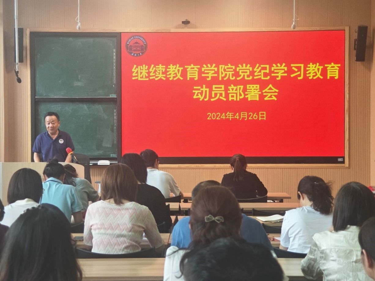 (通讯员 刘利霞)4月26日下午,继续教育学院召开党纪学习教育动员部署会,总支书记、院长朱伟主持会议,全体党员参会。