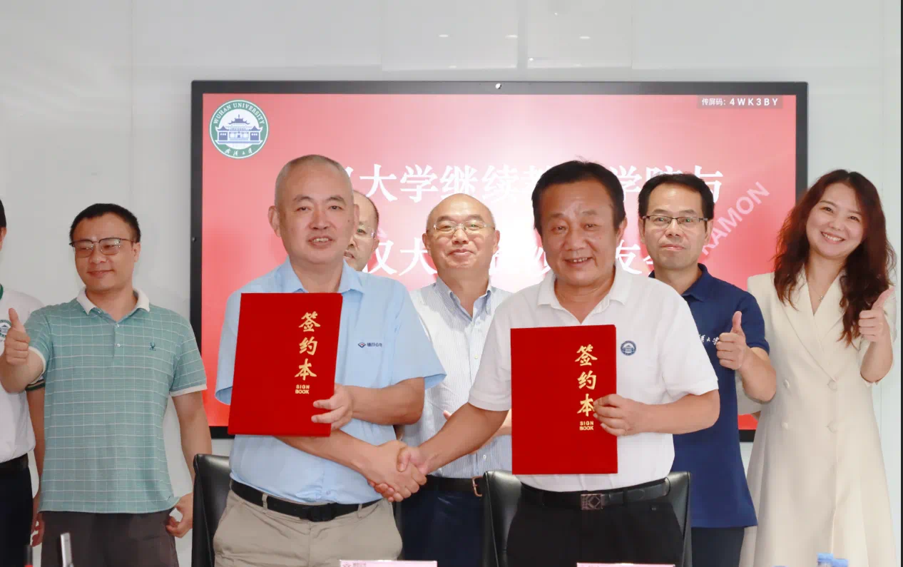 (通讯员 张素伟)9月6日,武汉大学继续教育学院与武汉大学长沙校友会举行战略合作签约仪式。武汉大学长沙校友会会长、湖南镭目科技有限公司总经理田陆,武汉大学长沙校友会常务副会长兼秘书长柳佳、副会长敬卿,我院院长朱伟、非学历教育管理办公室主任徐毅、培训一部相关负责人出席活动。田陆和朱伟作为双方代办签署了合作协议。