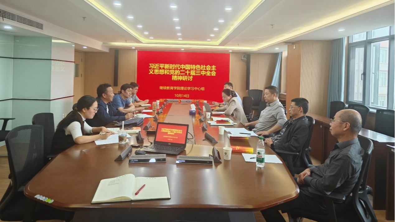 (通讯员 刘利霞)10月14日上午,继续教育学院党总支理论学习中心组召开集体学习会议,组织学院参加“学习贯彻习近平新时代中国特色社会主义思想和党的二十届三中全会精神集中轮训”两期培训的全体学员围绕学习内容开展研讨。会议由总支书记朱伟同志主持,学院全体处级干部及相当职务层次干部参加学习研讨。