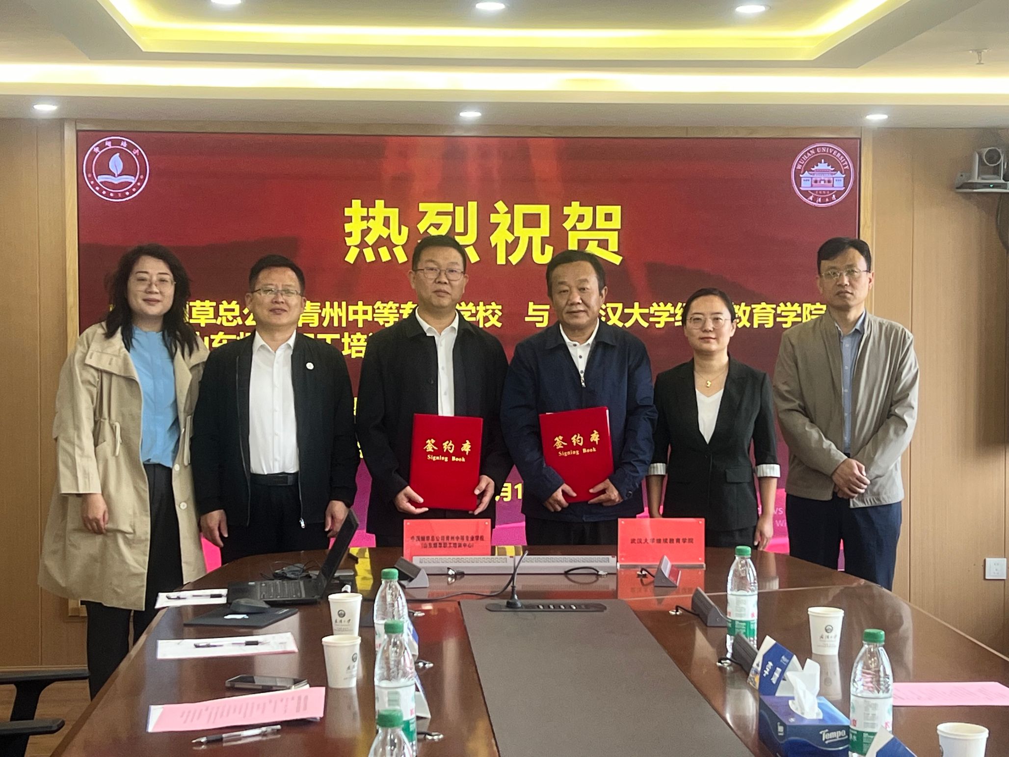(通讯员 肖雪峰)近日,我院与中国烟草总公司青州中等专业学校(山东烟草职工培训中心)成功签订教育培训战略合作框架协议。青州中等专业学校党委书记、校长战庆腾,对外合作部副科长杜传乐,教师李珊,我院院长朱伟、副院长梅洁、市场拓展办公室及培训三部负责人出席活动。战庆腾和朱伟代表双方签署合作协议。