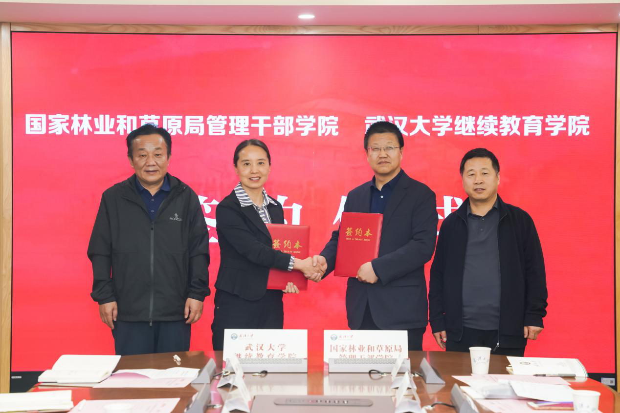 (通讯员 王磊)3月27日,武汉大学继续教育学院与国家林业和草原局管理干部学院举行了干部教育培训合作备忘录的签署仪式。国家林业和草原局管理干部学院党委书记刘春延,副院长王光华,培训管理处、科研管理处相关负责人,武汉大学继续教育学院院长朱伟,副院长仲华,市场拓展办公室及培训四部负责人参加签约仪式。仪式上,王光华和仲华代表双方正式签署了合作备忘录。