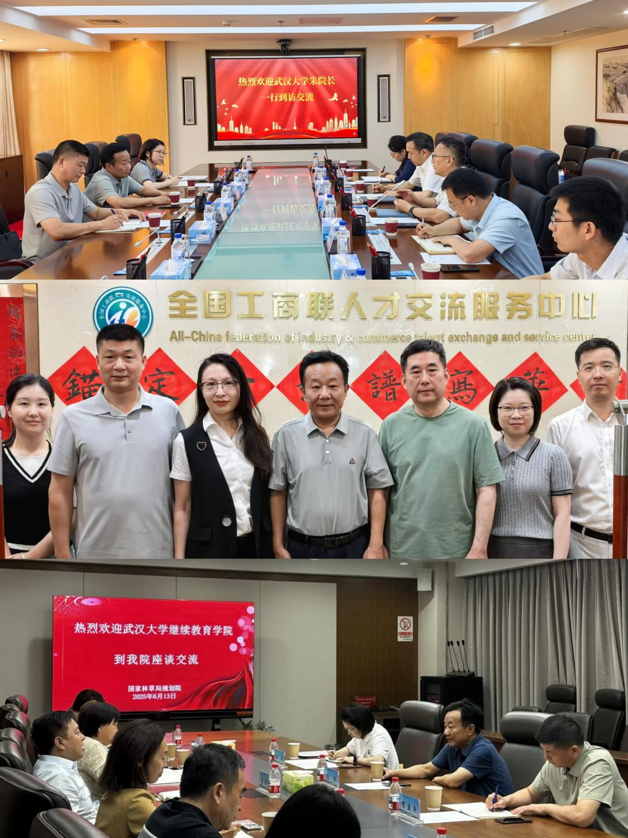 (通讯员 杨丹)6月12日至13日,武汉大学继续教育学院院长朱伟率市场拓展办公室及培训四部相关负责人赴北京,先后走访了全国工商联、全国工商联人才交流中心、国家林业和草原局林草调查规划院、中国航空油料集团有限公司,围绕干部培养、人才培育、产学研融合等核心议题开展座谈交流。