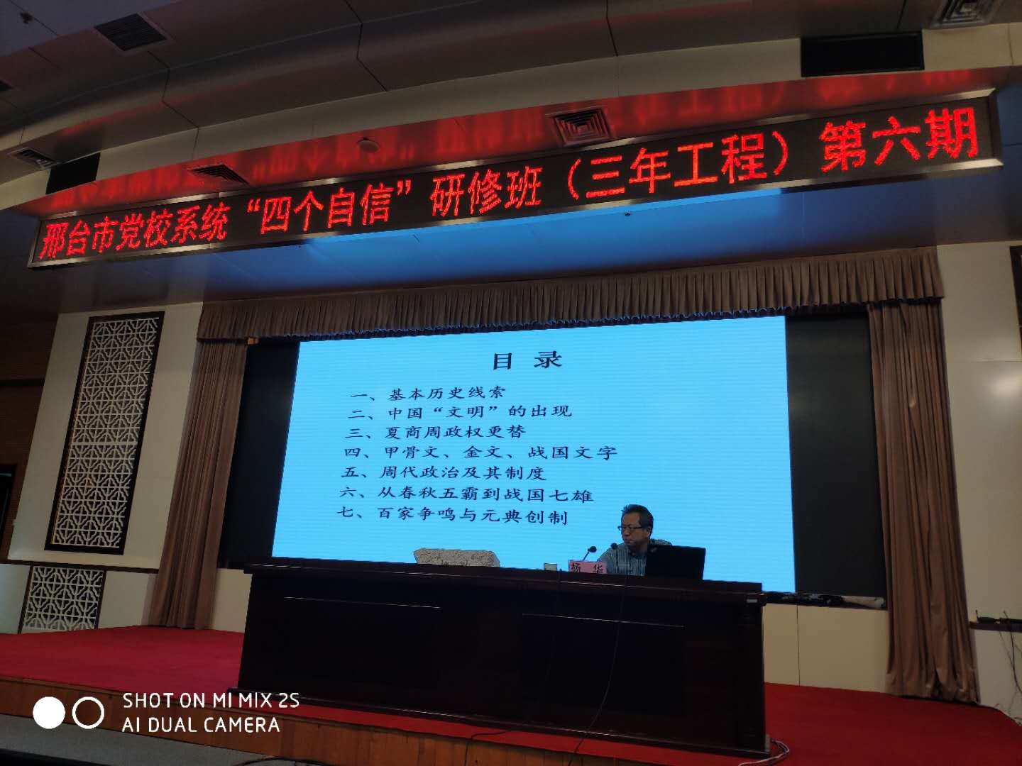 (通讯员:周平)2020年10月21日河北省邢台市党校为当地县区200余名干部举办了“四个自信”(三年工程)培训班。在这期培训班中,我校继续教育学院教育培训中心承接了部分教学任务,选派伍新木及杨华两位教授上门授课。
