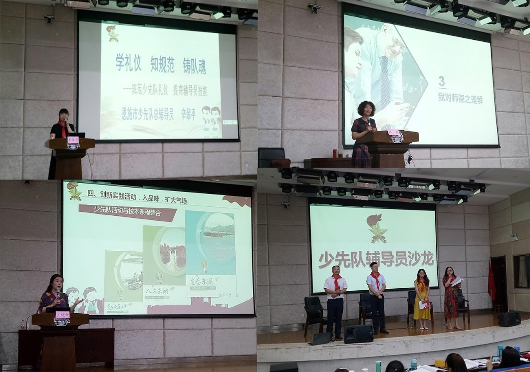 培训期间,在湖北省少先队总辅导员徐明峡的指导下,全体学员通过自我介绍、才艺展示等形式竞选产生大队、中队干部,就 “学习队章+入队仪式”、“红领巾相约中国梦”、“核心价值观记心中”、“追寻党的光荣足迹”等四大主题设计中队队会。通过自主组织,创新设计以及集体展示,辅导员老师们规范了少先队的礼仪,了解更加明确了少先队工作的重大意义。