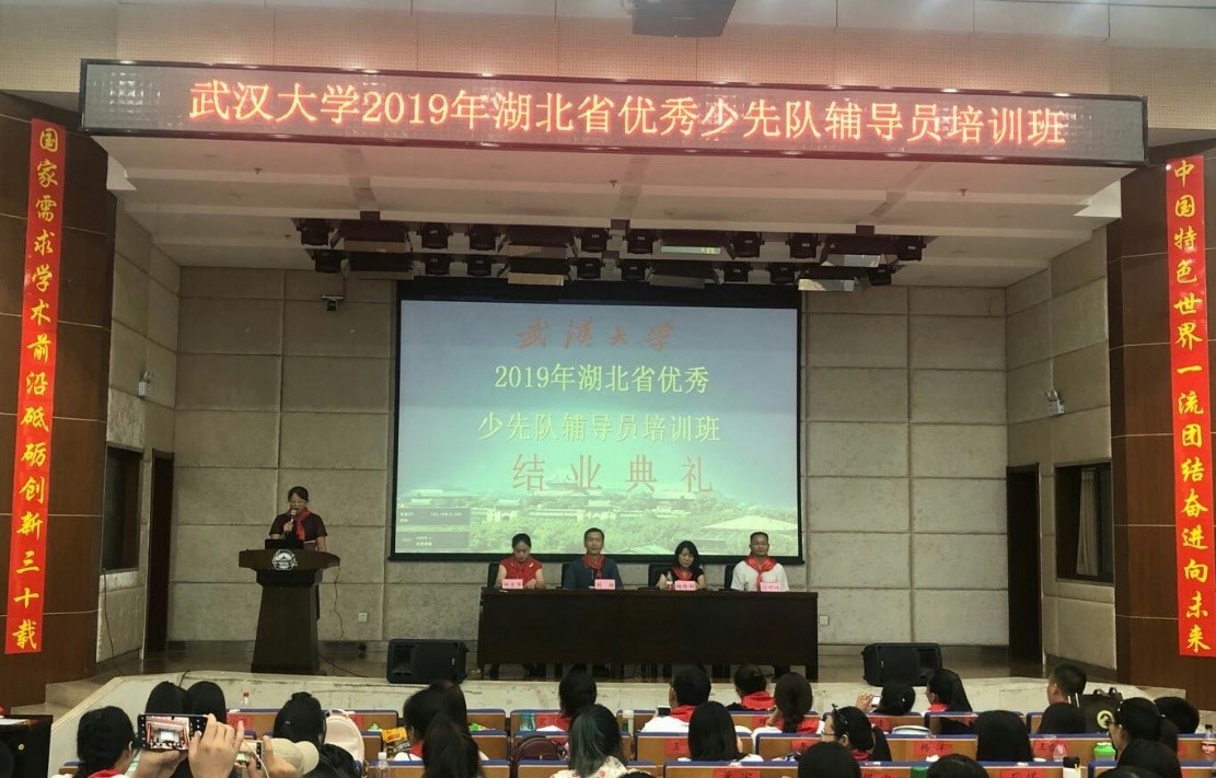 7月24日至30日,由省教育厅、团省委、省少工委主办,武汉大学继续教育学院师资培训中心承办的2019年湖北省优秀少先队辅导员培训班在武汉大学信息学部莱卡厅举行。湖北省少先队总辅导员徐明峡以及武汉大学继续教育学院培训管理部副主任万胜勇出席开班典礼。来自全省各地的206名优秀少先队辅导员,在武汉大学重温隆重而简朴的6天“队员”生活,学习习近平总书记对少年儿童与少先队工作的重要论述,及感受少先队改革的新浪潮。
