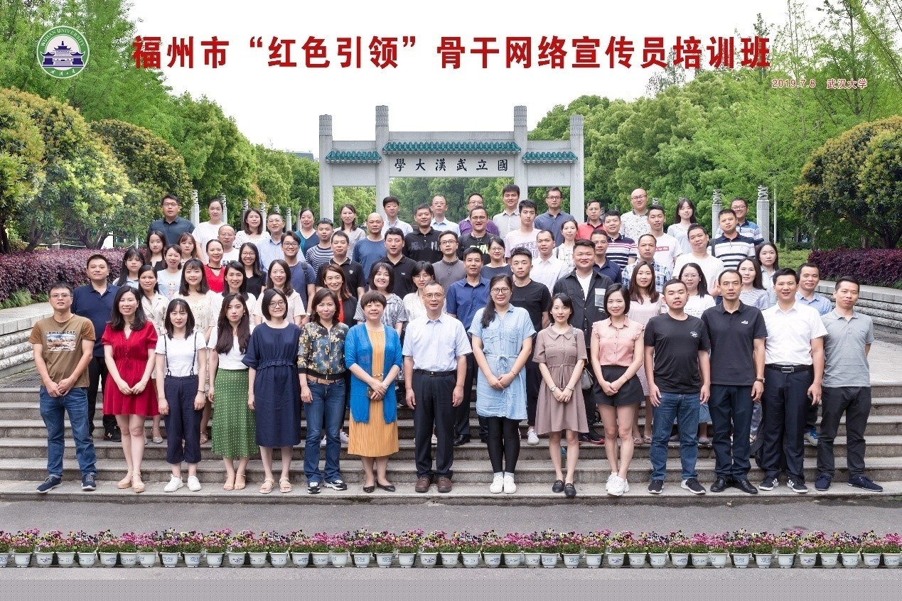 2019年7月7日至7月12日,福州市“红色引领”骨干网络安全宣传员培训班成功举办,来自福州市的70余名骨干安全宣传员在武汉大学参加了为期五天的培训学习。本次培训是由福州市网信办委托,武汉大学继续教育学院教育培训中心具体承办。福州市网信办卓继辉主任和武汉大学继续教育学院教育培训中心宋蓉主任参加了开班仪式。