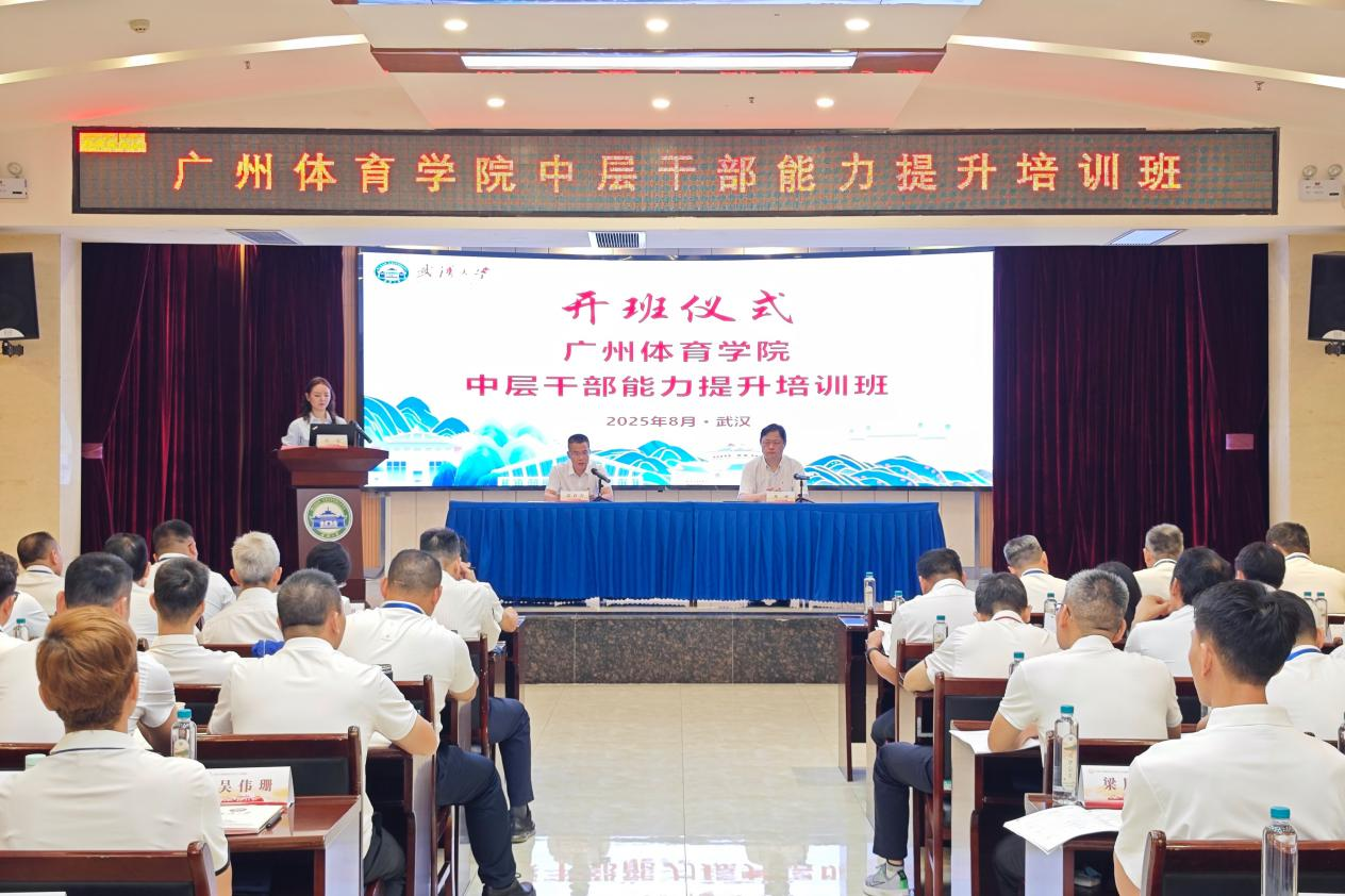 (通讯员 尹子彤)8月11日至15日,广州体育学院中层干部能力提升培训班在武汉大学顺利举办。广州体育学院党委委员、副校长张育方,武汉大学副校长龚威出席开班仪式并讲话。仪式由武汉大学继续教育学院培训一部主任容曼主持。来自广州体育学院的70余位中层干部参加了此次培训。