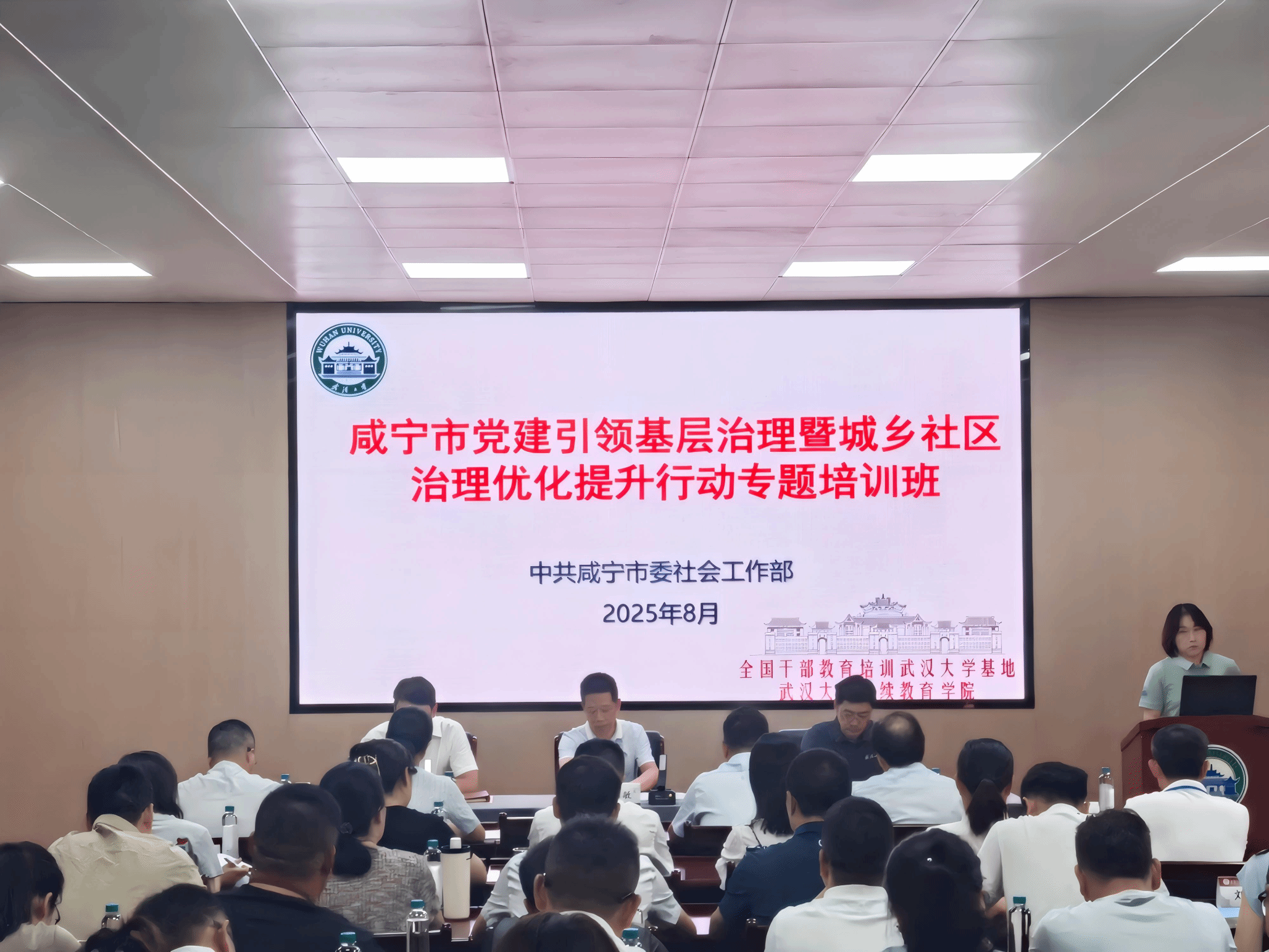 (通讯员 彭方、张璐)8月18日至20日,咸宁市党建引领基层治理暨城乡社区治理优化提升行动专题培训班在武汉大学顺利举办。咸宁市委社会工作部副部长黄志敏、武汉大学继续教育学院副院长谢韵出席开班仪式并讲话。来自咸宁市、县社会工作部和全市70个乡镇街道共计85名学员参与此次培训。