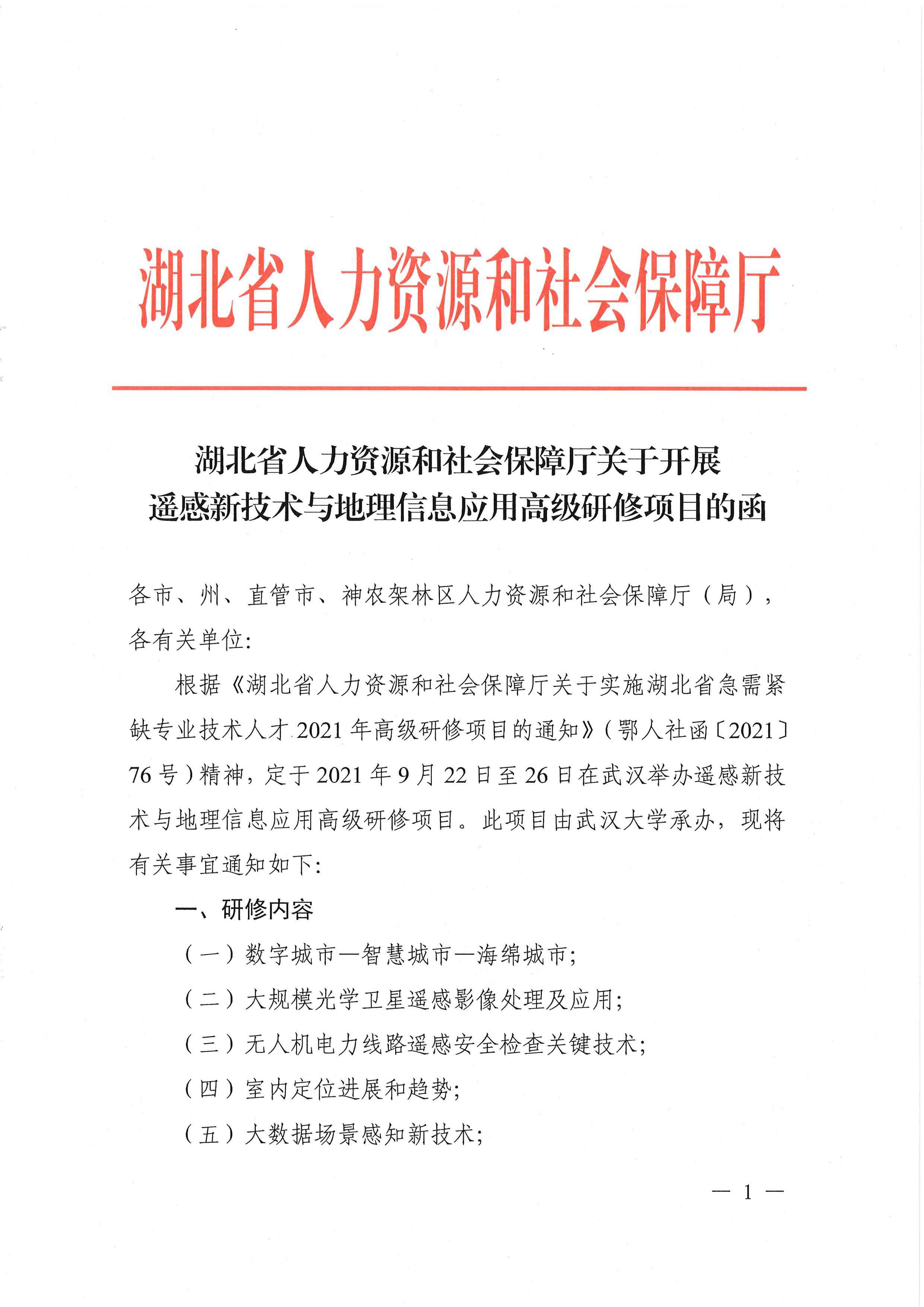 湖北省人力资源和社会保障厅关于开展遥感新技术与地理信息应用高级研修项目的函