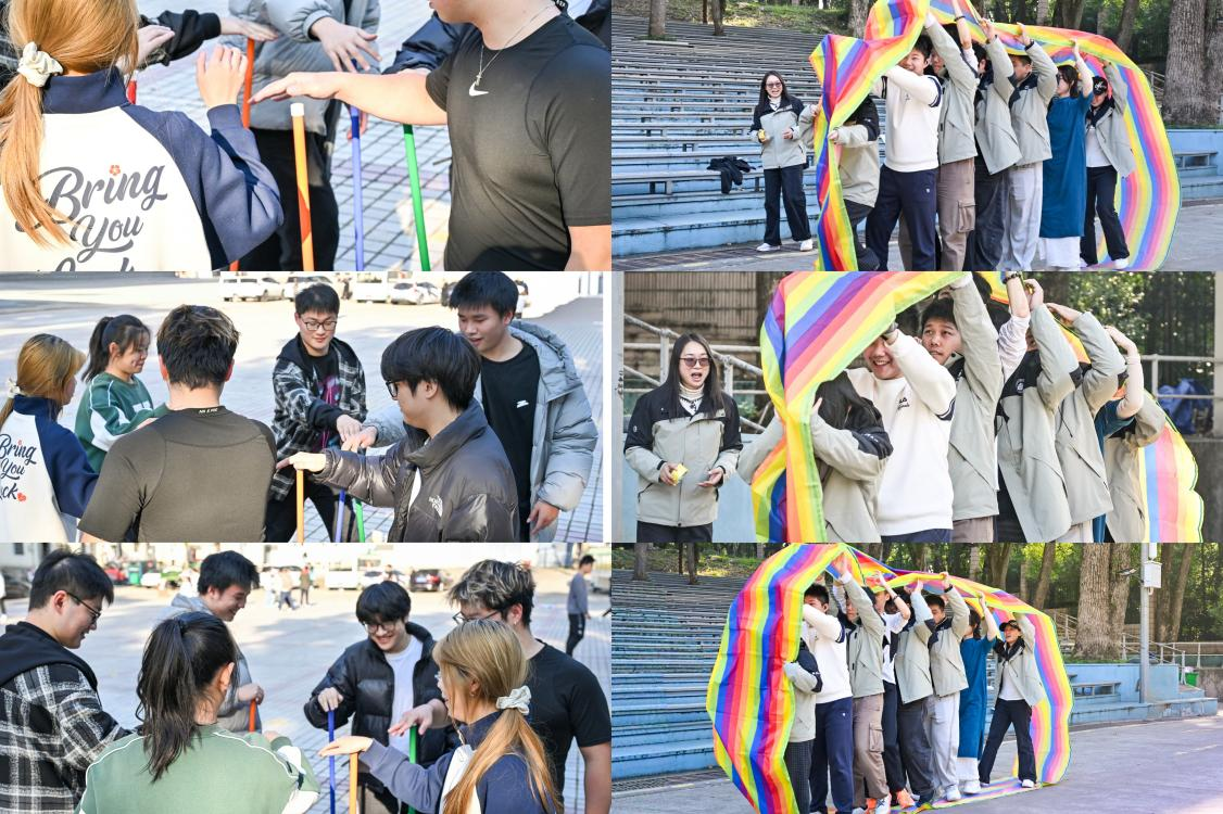 本次趣味运动会设置了“车轮滚滚”、“珠行万里”、“不倒森林”、“趣味接力跑”等11个项目,十一支队伍在竞技中交流,在协作中同行。“旋风跑”时他们步履齐整,如风疾行;“珠行万里”间他们全神贯注,接力传递;“不倒森林”里他们眼神交汇,默契呼应——课堂上的沉静严谨,在此刻化为跃动的身影、飞扬的笑语与不绝于耳的鼓舞。
